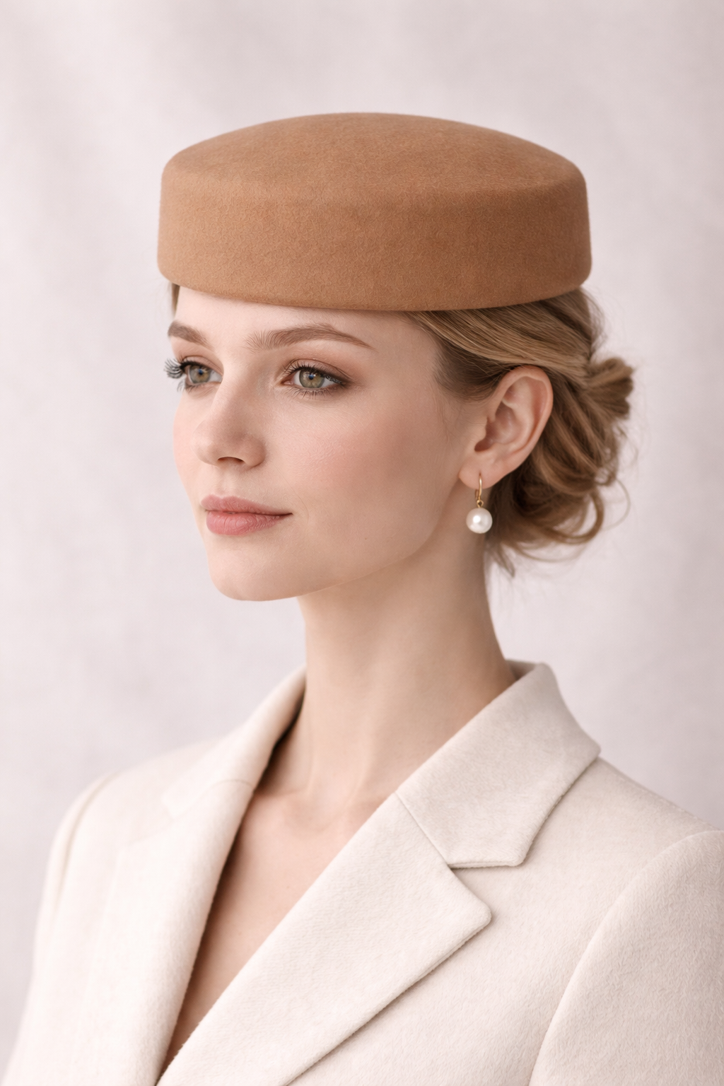 The Kensington Pillbox Hat is crafted from 100% wool in a structured felt with a clean, architectural shape that sits gently on the crown, elevating any look with quiet sophistication. Designed to complement refined wardrobes, it brings balance, poise, and understated luxury to both everyday wear and special occasions.