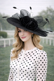 Graceful, feminine, and timeless, The Lady Windsor is the statement piece that completes any elegant ensemble. Featuring a wide-brimmed silhouette adorned with sculpted mesh details, romantic floral accents, and delicate feather flourishes, this hat brings classic charm with a modern twist.