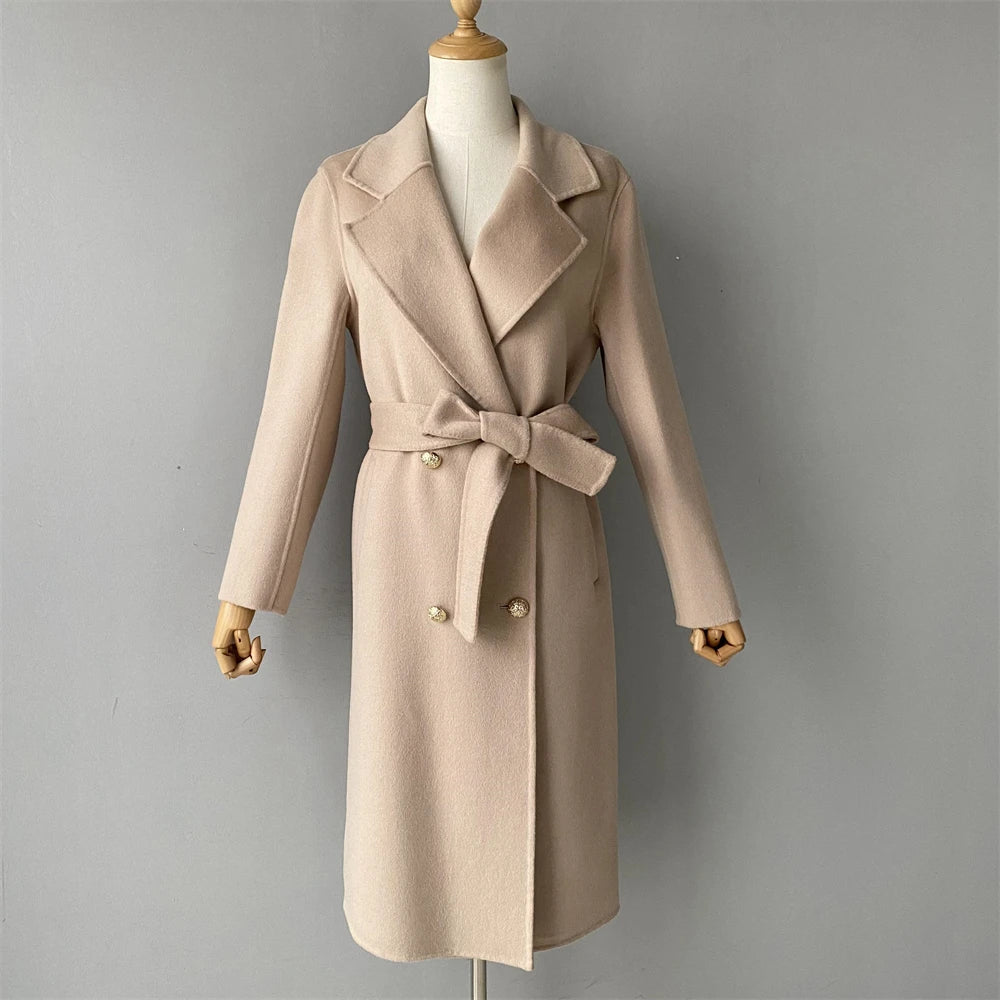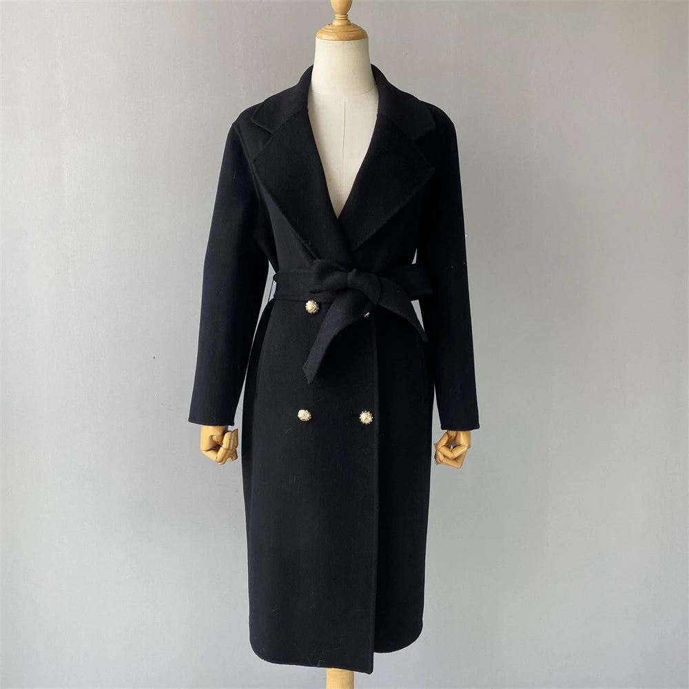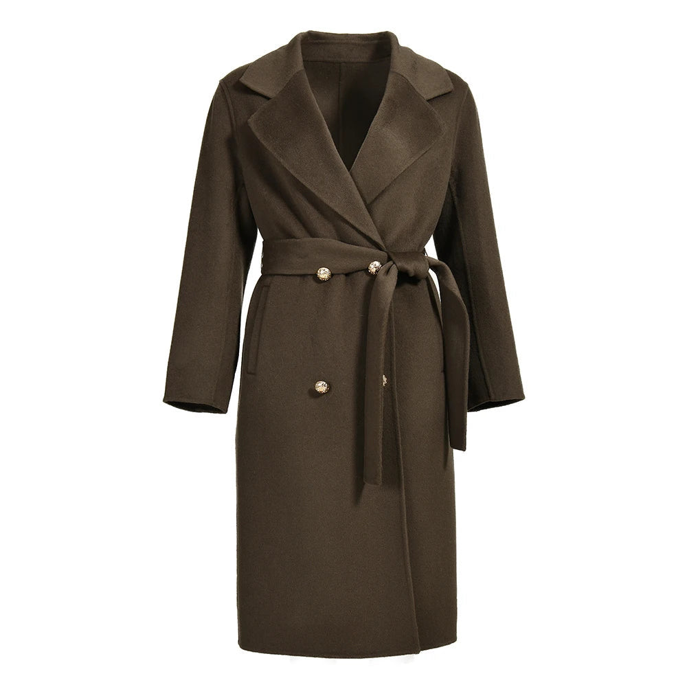 The Windsor Coat is a masterpiece of timeless elegance and refined craftsmanship. Made from premium materials, this double-breasted coat features a flattering midi length, a classic notched lapel, and gold-tone button detailing for a touch of sophistication.