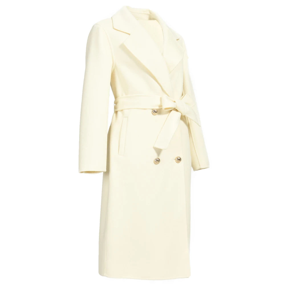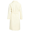 The highlight of the design is the statement waist tie, offering both structure and versatility, allowing you to create a perfectly tailored silhouette. In a luxurious ivory hue, it’s the perfect outerwear piece to elevate any outfit, whether styled for daytime refinement or evening sophistication.